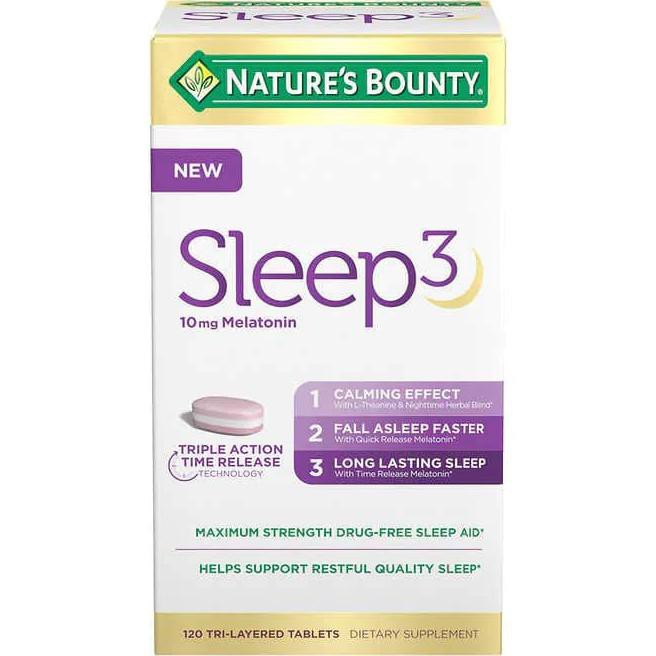 Amazon Com Melatonin By Nature S Bounty Sleep3 Maximum Strength 100 Drug Free Sleep Aid Dietary Supplement L Theanine Nighttime Herbal Blend Time Release Technology 10mg 60 Tri Layered Tablets Health Personal Care