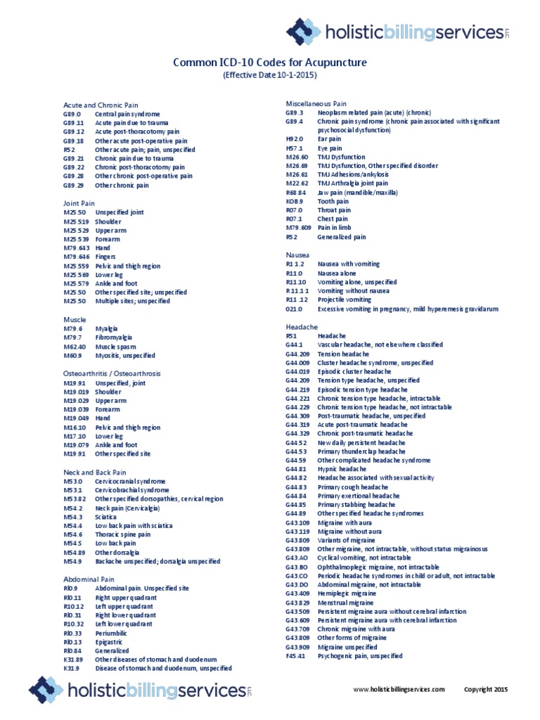 Common Icd10 Codes For Acupuncture 1 Migraine Headache